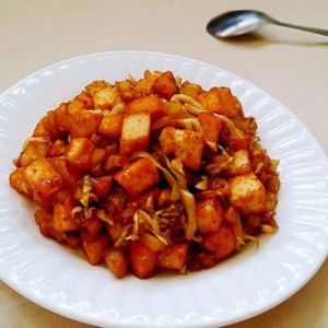 炒到有点透明,把土豆扔进去