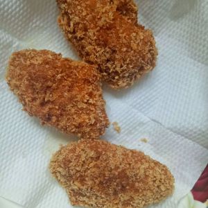 把裹完鸡蛋液的鸡翅放在面包糠里,裹上面包糠!