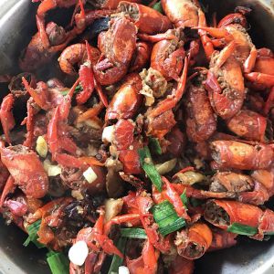 翻炒几下,倒入料酒,白醋,生抽,盐,酱,鸡精来回地翻炒,至虾子表面变红,倒入啤酒抹过虾子,