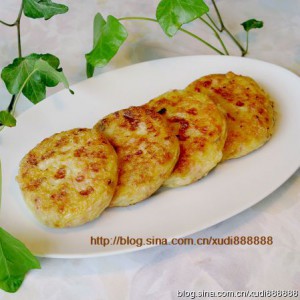 用平底锅小火两面煎成金黄色,用吸油纸吸去表面的油即可.