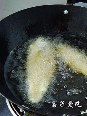 入油锅炸,炸成金黄色捞出来,喜欢沾调料的就准备些酱之类的