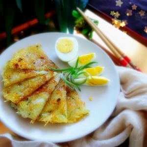 炒勺放油,放入土豆丝摊平,薄厚适中就可以,中火煎