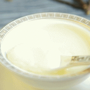 蒸好的牛奶晾凉后会有一层奶皮,将奶皮轻轻划破,牛奶倒出,碗底保留一点