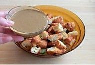 蒜泥中加盐,味精,水适量调匀,放入麻汁中