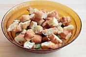 调匀的蒜泥浇到黄瓜、油条中,拌匀即可