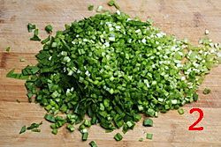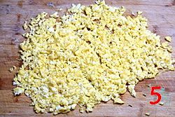 将大块的鸡蛋剁成碎末(当然不愿意吃太碎的爱吃大块鸡蛋的也可以不剁)。