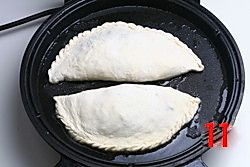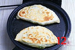 饼铛内刷少许油,烧热,放入韭菜盒子。