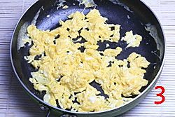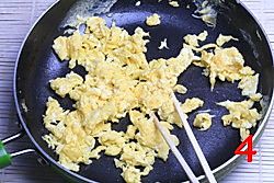 用筷子扒拉开(不要加盐,否则炒出的鸡蛋容易发黑)。