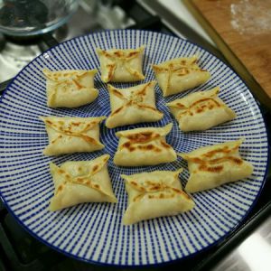 饺子皮就可以,可以赶得大一些,可以多包点儿馅儿,不过小的的也好,一口一个
