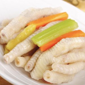 鸡爪捞出来,马上放进凉白开里冷却,最好再放点冰块,如果没有冰块,也可以放进冰箱里凉着,总之,要把热乎乎的鸡爪迅速凉下来,这样皮才会劲道、有弹性。