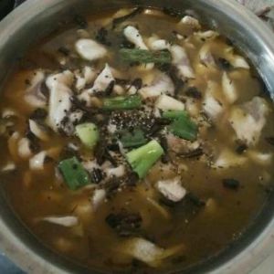 大火五分钟过后把鱼头放进煮一分钟再放鱼排煮两三分钟分钟再把它捞到盆子里,捞好了过后再把鱼片葱段丢到锅里煮上两三分钟,再把它倒进盆子里。