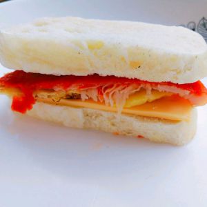 冰箱里恰好有速冻鸡柳,就选用了鸡柳,微波炉高火一分半刚好。其实可以根据具体情况,选用多种食材,三明治是一种非常简便的营养快餐。