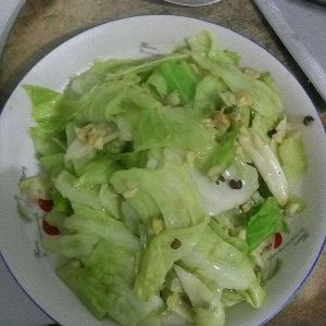 快熟的时候加入蒜末,盐,味精翻炒,就可以盛盘了