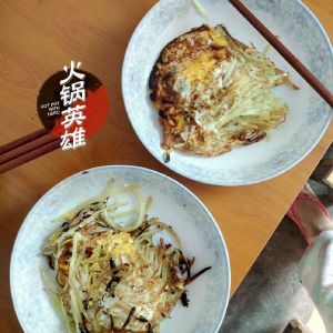 热锅冷油,油温6成热的时候,用手捏一把土豆丝放进锅中,然后赶紧将一个鸡蛋打在土豆丝上(尽量让土豆丝形成一个圆形)