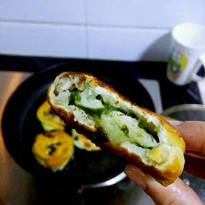 锅里放油,煎至两面金黄,煎的时候可以盖上盖子。