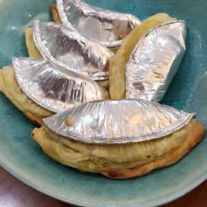 跟包饺子一样。然后放入烤箱烤180度 20分钟就好了啦啦啦啦!