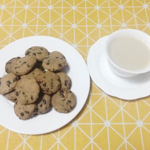 加入巧克力片,搅拌,保证巧克力片在面团中均匀分布。