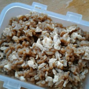 隔夜剩米饭,(不用介意软硬程度),加入一勺油,把米饭押松,拌开后倒入适量生抽和酱油与米饭拌匀(生抽和酱油按照个人喜好的颜色深浅,随意调整比例。)