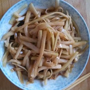 放入少许糖.耗油.醋.生抽。就OK 了。爱吃辣椒的在放点辣椒油。