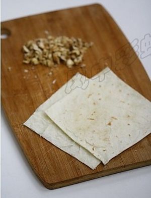 将圆形的春饼四周切去,切成正方形,上锅蒸软
