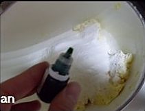一份不加色香油,做成原色的,两外两份分别加入红绿色香油用橡皮刮刀搅拌均匀(我做的时候,稍微有些失误,筛了面粉了,才放的色香油,这样不好拌匀,一定记得,先放色香油,拌匀以后,筛面粉)