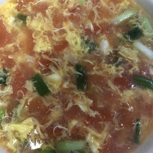 倒入打散的鸡蛋液,一边倒一边用筷子搅拌成蛋花(一定要水烧开的时候倒),再倒入淀粉水,加适量盐 加一丢丢糖提鲜