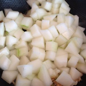 下入冬瓜一同翻炒30秒。