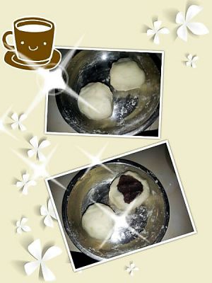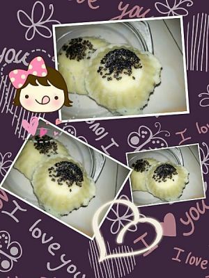 找个小模具,把团沾黑芝麻压在小模子里,上屉蒸20分钟
