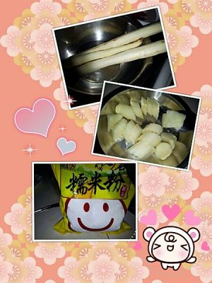 山药去皮蒸熟打成泥,加少许糯米粉和成团
