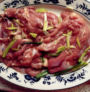 鸭肉加料酒、葱姜、盐腌制30分钟。