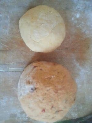 把红枣和枸杞放进第一步调好的面粉里。