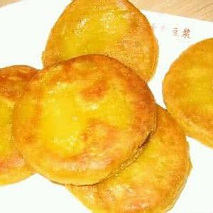 平底锅里抹一点点的油 下入南瓜饼煎一下 然后翻面