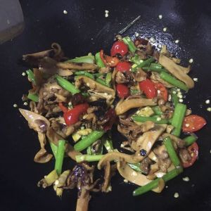 然后加入泡椒,还有一点泡椒水。可以尝一下咸淡,不够咸可以加点酱油,就可以出锅了