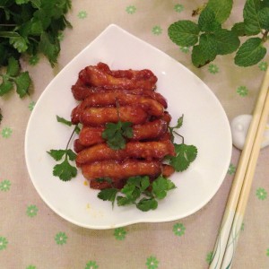 芡汁变浓稠红亮时,加入炸好的肉条,快速翻匀出锅