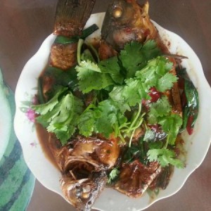 加入最重要的鱼,炒一会,可以再加点盐和胡椒粉,我们是加了一袋香辣酱,够味了,就没有再加盐