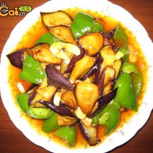 炒锅加底油,油稍热放入蒜末.碗中欠汁倒入锅中,开锅后迅速倒入炸好的茄子.青椒。烧至汁浓入味,翻炒均匀即可出锅装盘。