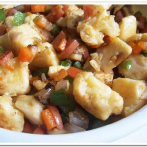 锅里热油,倒入胡萝卜洋葱丁等翻炒
