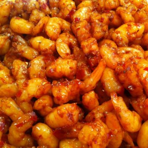 出香味后倒入虾仁儿翻炒放少许料酒去腥再放酱油调一下颜色后放少许盐糖调一下味翻炒待虾仁水分炒干即可完成