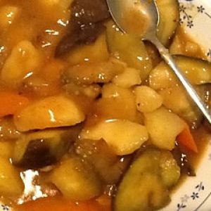 蒸锅水开 先蒸一下土豆 胡萝卜块 土豆用叉子稍稍能扎得动 最后放入茄子块继续蒸