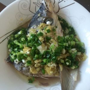 蒸个八到十分钟,出锅放葱花,然后锅里热点油淋上去。