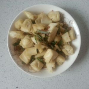 馒头放蒸锅里蒸透,取出切成块状放盘中备用。