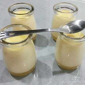 将蛋奶液倒入装有焦糖液的小奶瓶中,焦糖应该已经在瓶底凝固了。将小奶瓶放入烤盘中,并在烤盘内倒入1—2厘米高的热水。放入预热好160度的烤箱,中层,上下火,烤约40分钟左右即可。