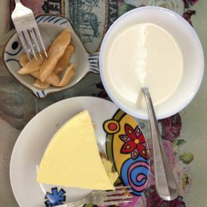 将酸奶倒出保鲜盒内放凉准备入冰箱。用玻璃瓶盛出180ml作为下次的菌种,第一次用量杯量好,瓶上用油性笔做标记,以后直接灌入。如果懒,很久做一次,那就到超市再买酸奶作种吧!