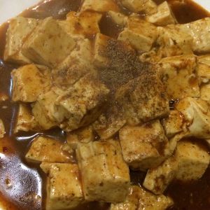 把豆腐切块儿入沸水中煮一下,去豆腥味儿。
