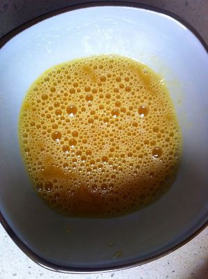 鸡蛋打好,搅匀,蛋液里放少许盐和鸡精