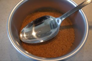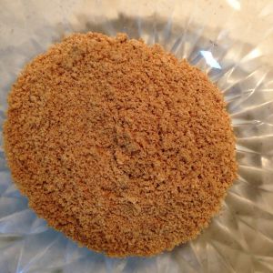 饼干装入坚固的胶袋,用擀面杖压成粉末,黄油隔水化开,加入饼干碎内拌匀。