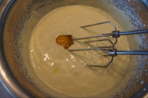 加入整个鸡蛋搅拌均匀。最后加入玉米淀粉搅拌均匀即为芝士面糊。