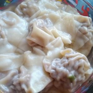 水烧开了放入包好的馄饨,一定要开水下锅哦!汤料是自己调的,可以放点虾米,紫菜,这样汤汁会很鲜美!