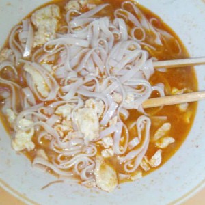 然后加入两碗清水烧开,水开后加入盐,酱油,醋,辣椒酱等作料
