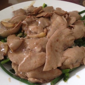 入油锅前将少许盐、生粉拌入腰花,待油八九成热时迅速入锅翻炒;